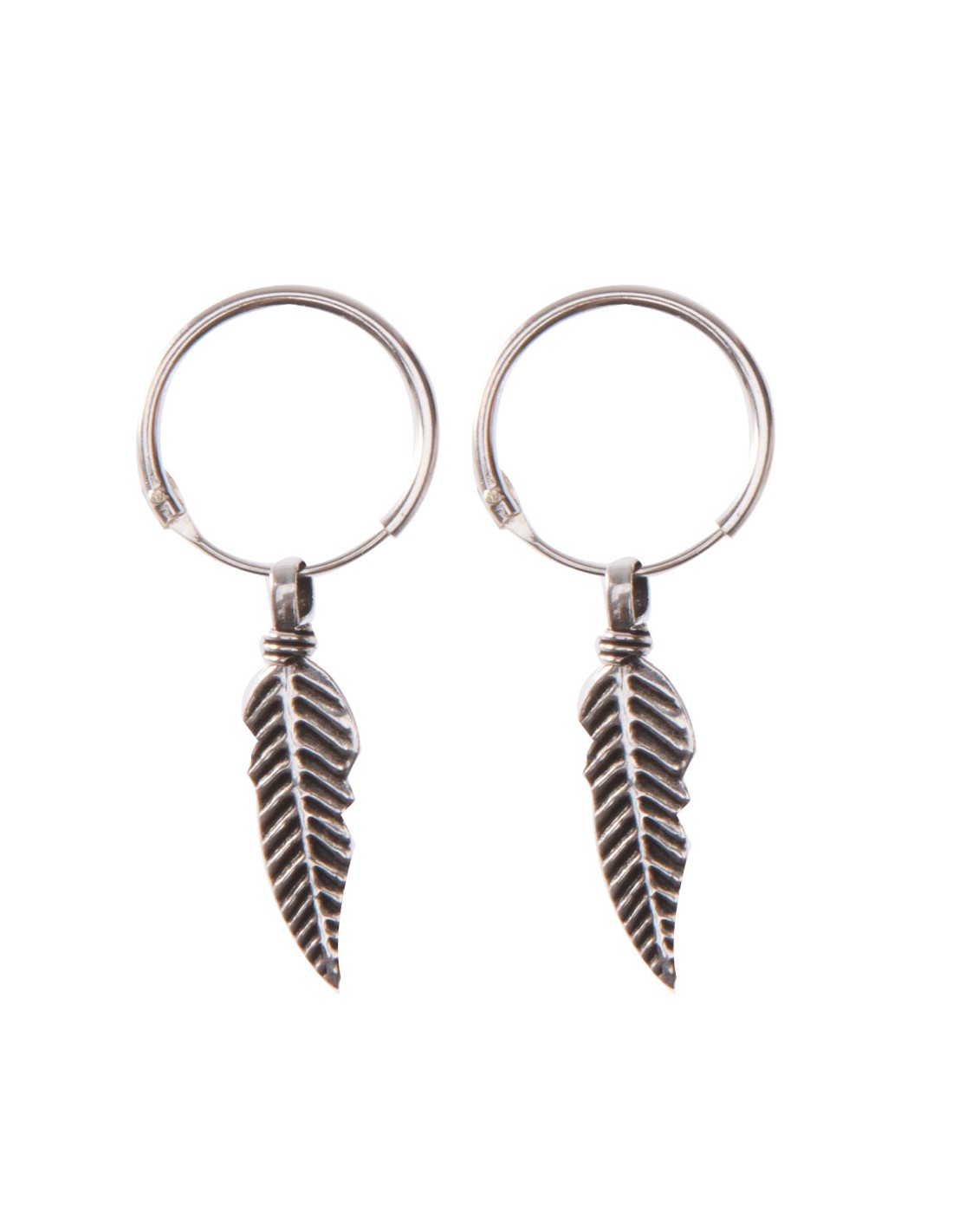 Aro de Plata de 12x1,2mm. de diámetro , con pluma grabada y oxidada de 12x5mm. de tamaño. .