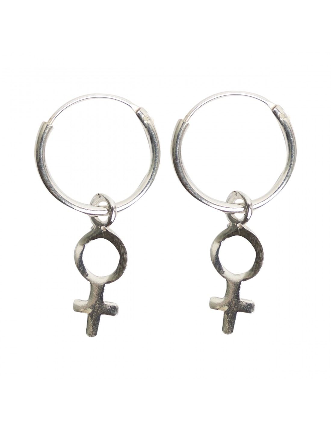 Aro liso de plata de 12mm. de diámetro con símbolo de Venus (Representa el sexo femenino)