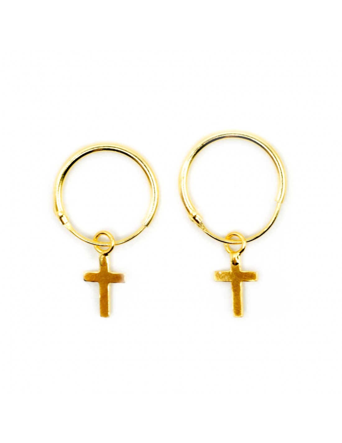 Aro de 1,2x12mm. de diámetro con cruz de 10x5mm. en Plata dorada,