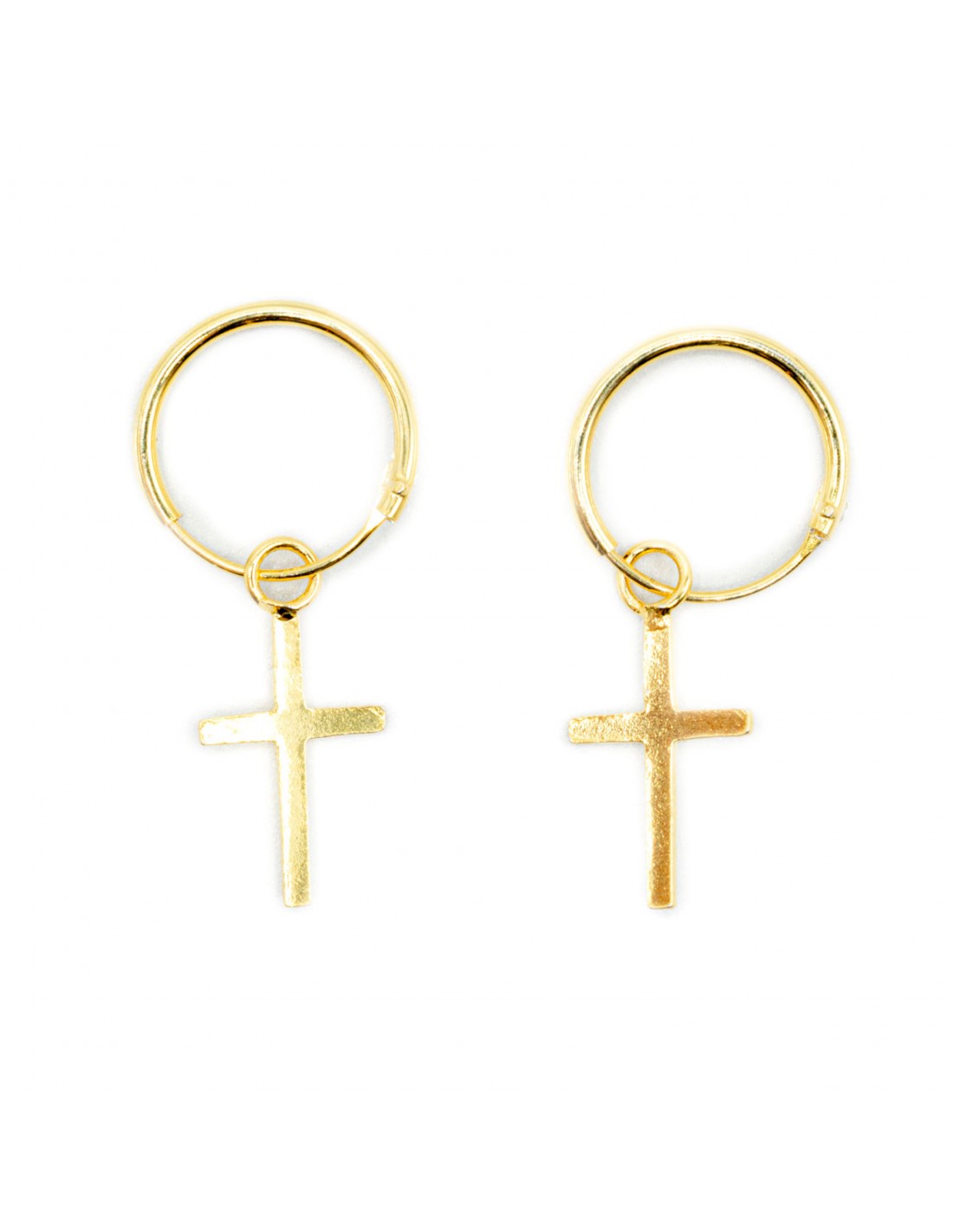 Aros de plata 925 Aro con cruz de Plata dorada. 010030304 Aro de 1,2x12mm. de diámetro con cruz de 10x5mm. en Plata dorada, Ver