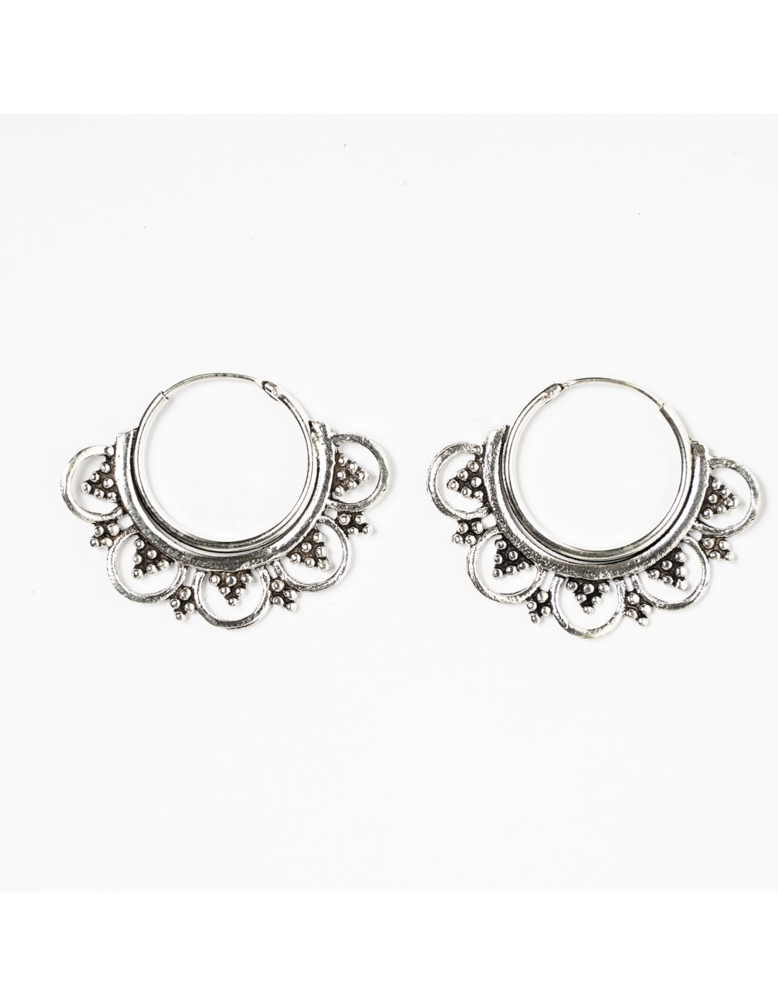Aros de plata lisa con adorno . Diámetro de 16mm.