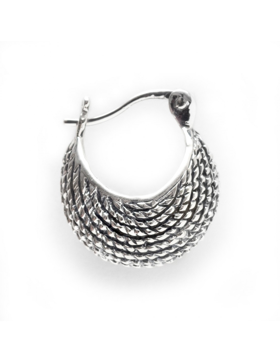 Criolla grabada de Plata . Cierre de gancho con bisagra.Tamaño de 15x18mm.