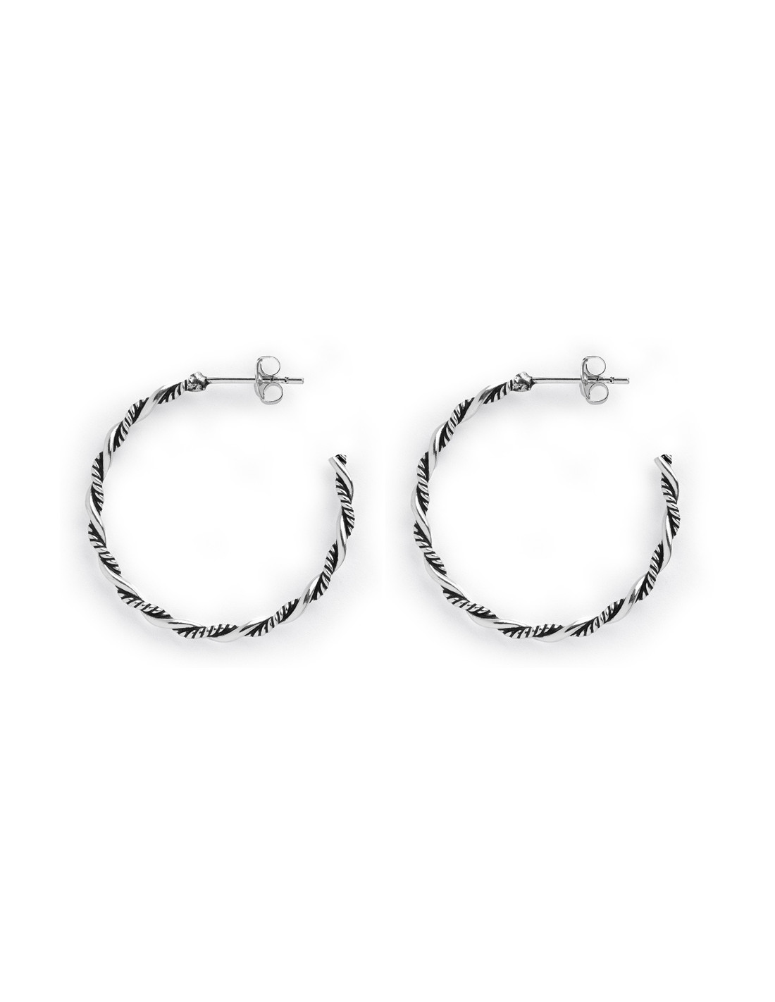 Aro trenzado de Plata . Diámetro de 30mm. Cierre de presión .