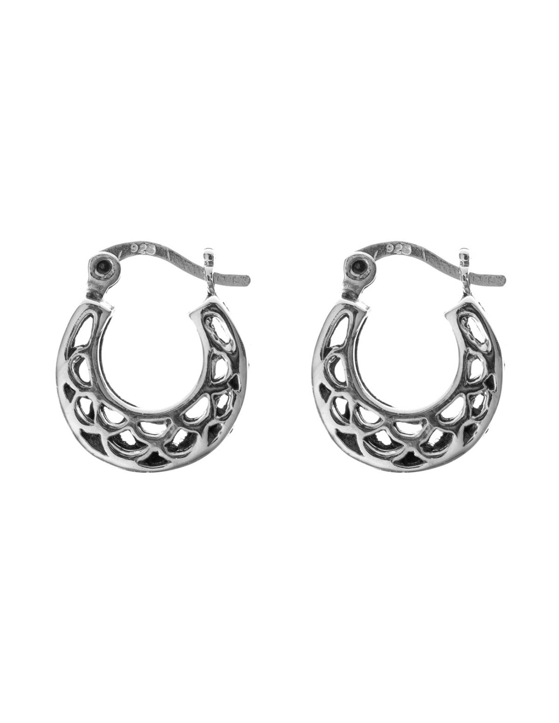 Criolla calada de Plata . Tamaño de 12x15mm. Cierre de gancho con bisagra.