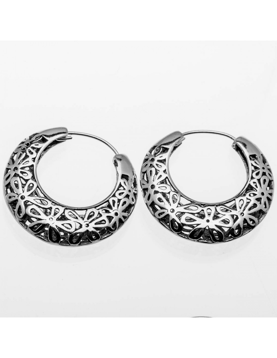 Aros de plata 925 Criolla de plata trabajada.Tamaño de 15mm. 01050 Criolla "Media Luna de plata" de plata . Cierre de presión. Ver