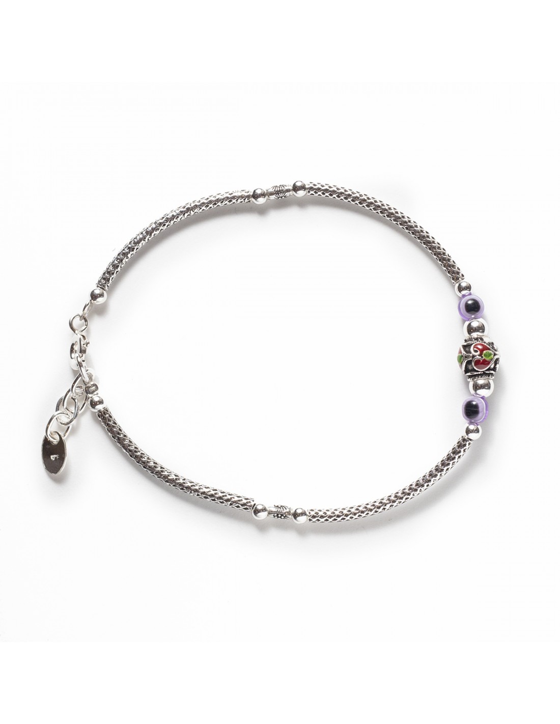 Pulsera de Plata cob Bolita central esmaltada . Cadenita de 5cms. Cierre de reasa.