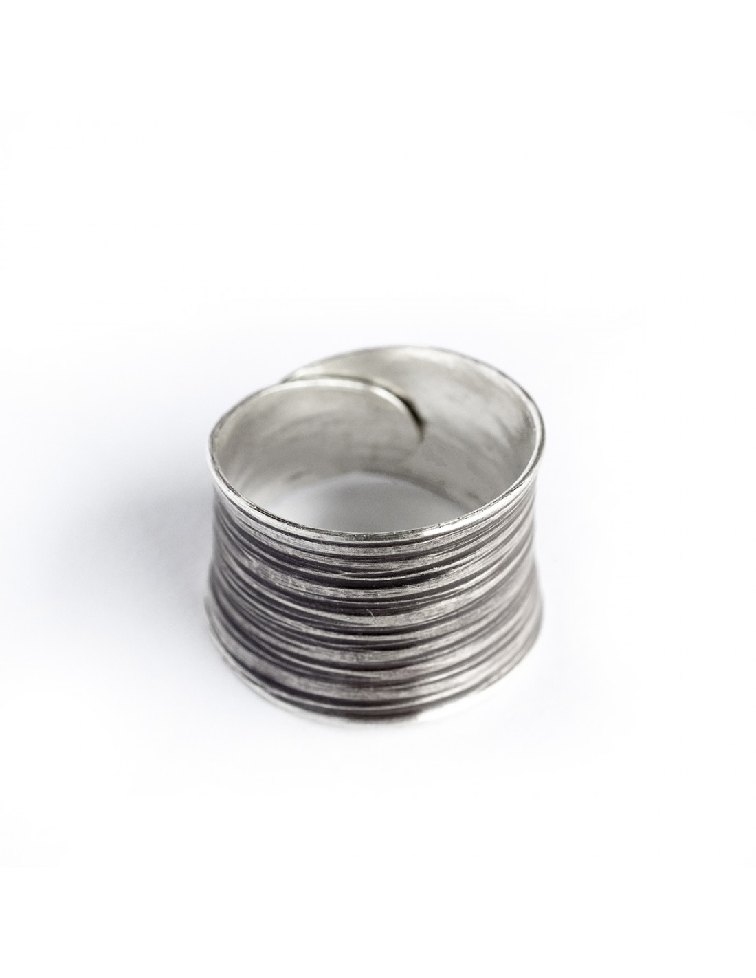 Inicio Anillo étnico grabado de plata mate. 11151 Anillo étnico de plata ,grabado a mano ,brazo abierto tamaño ajustable. Ver