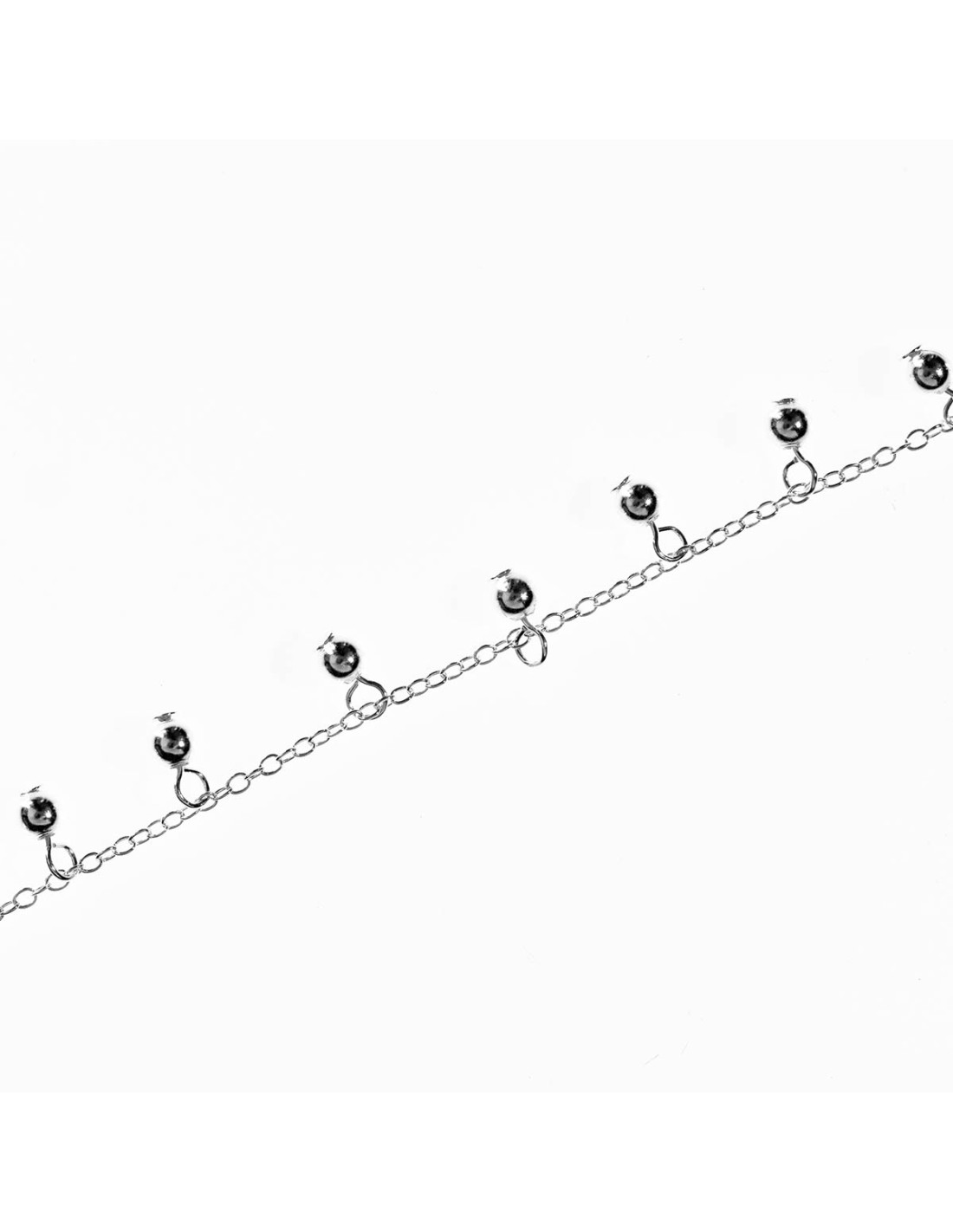 Tobillera de Plata con bolitas colgando.