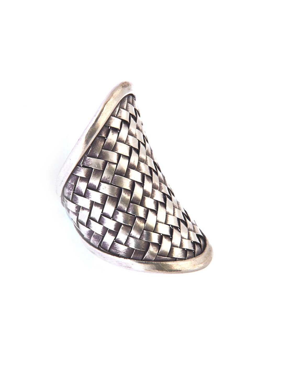 Anillo étnico trenzado de plata púlida.