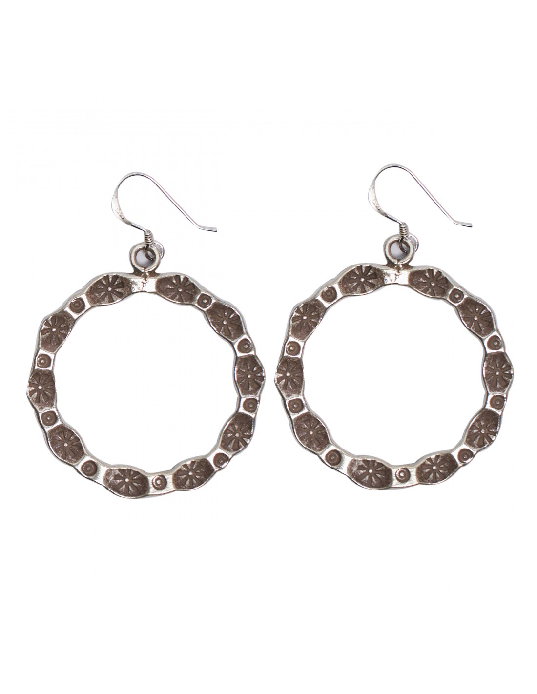 Pendiente étnico de plata de 35 mm. de diámetro . Cierre de gancho