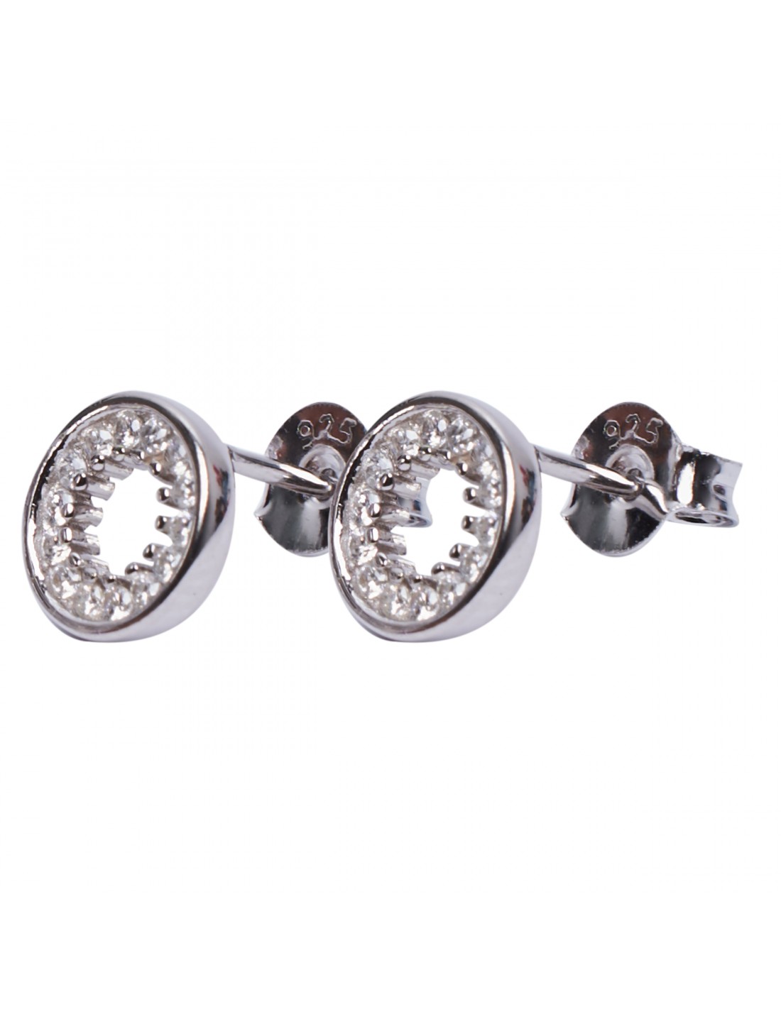 Pendienre "Círculo" de plata rodiada con Zirconitas blancas .