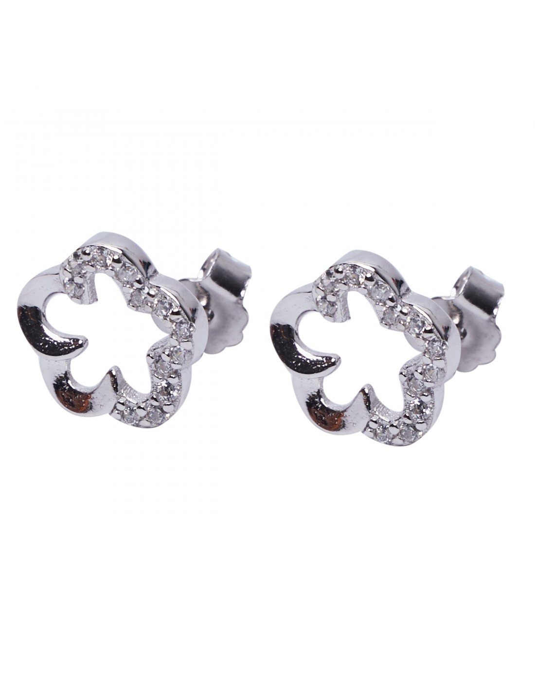 Pendiente "Flor" de plata rodiada.