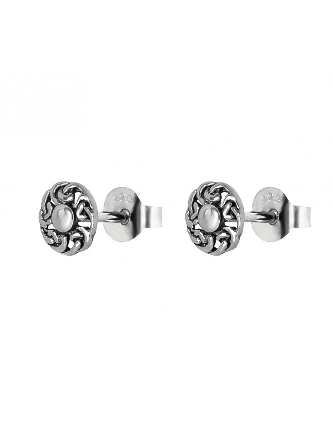Pendiente grabadito Mini de Plata .Diámetro de 7mm. Cierre de presión