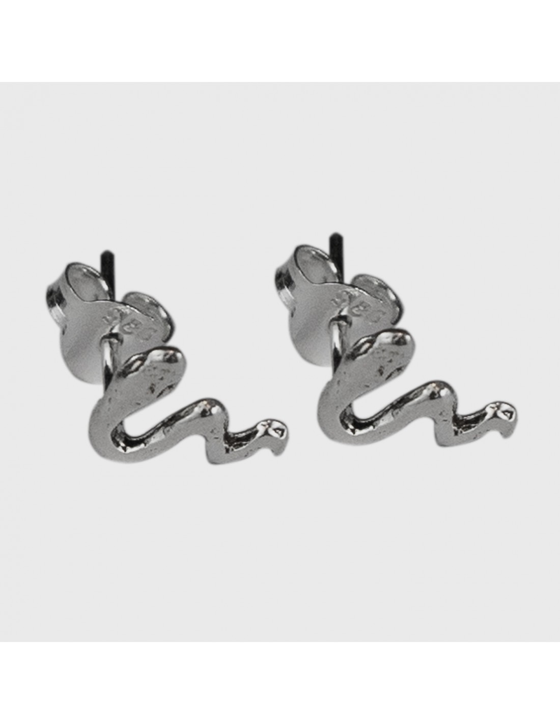 Pendiente Mini de Serpiente de Plata brillante . Tamaño de 7x9mm. Cierre de presión.