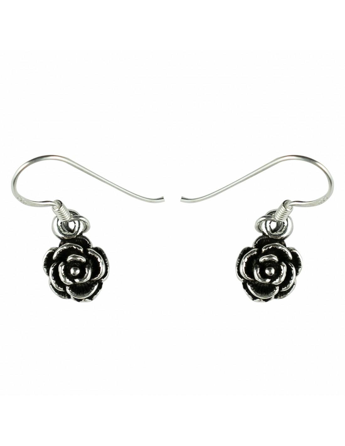 Pendiente de Rosa de Plata. Cierre de gancho.