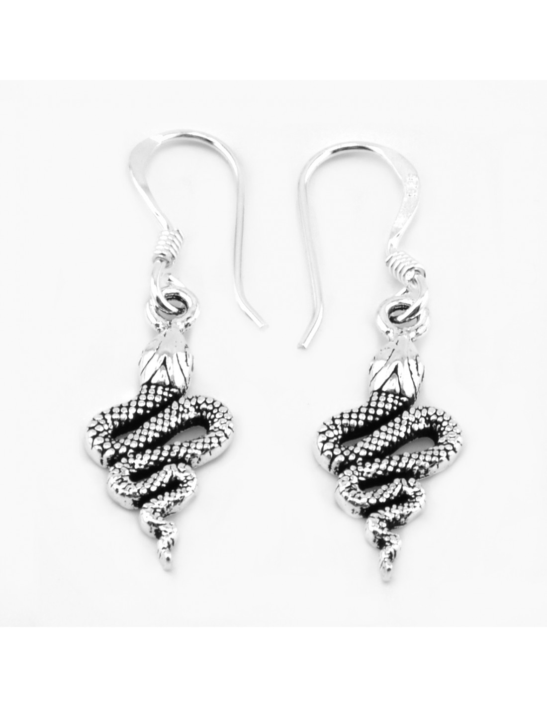 Pendiente de Serpiente grabado de Plata . Tamaño de 11x22mm. Cierre de gancho.