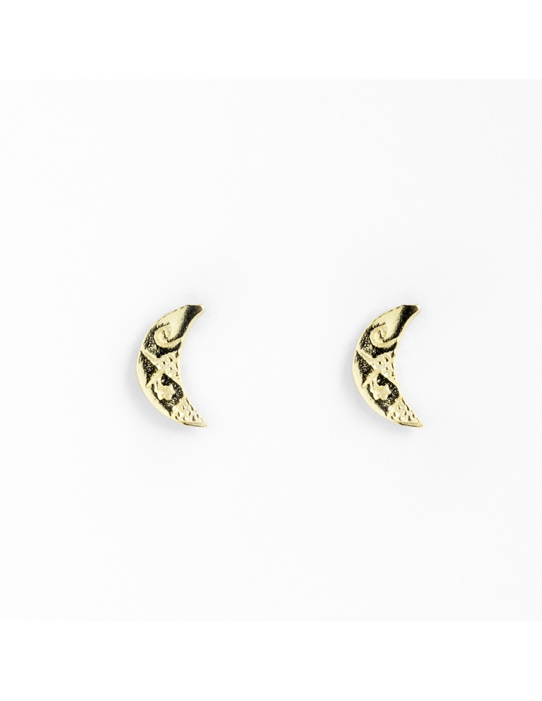 Pendiente Mini de Luna de Plata dorada . Cierre de Presión.