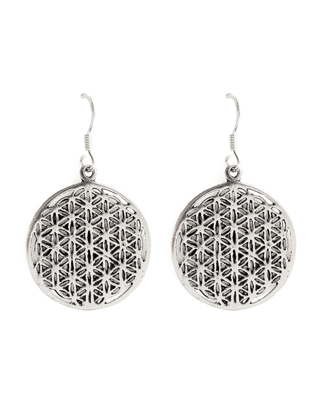 Pendiente de Semilla de la Vida de Plata . Diámetro de 20mm.