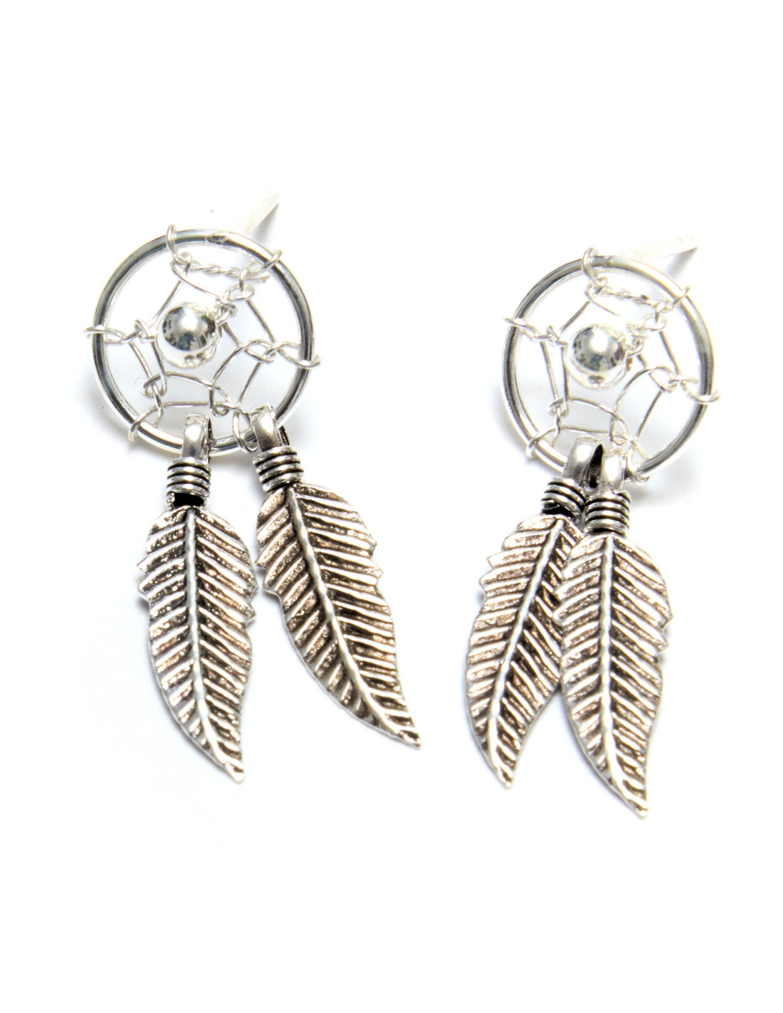 Pendiente Atrapasueños de Plata con 2 plumas . Cierre de Presión.