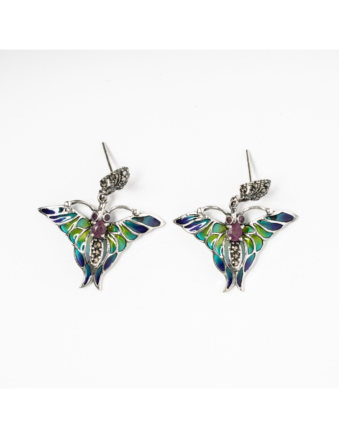 Pendiente mariposa de plata combinado con vidriera
