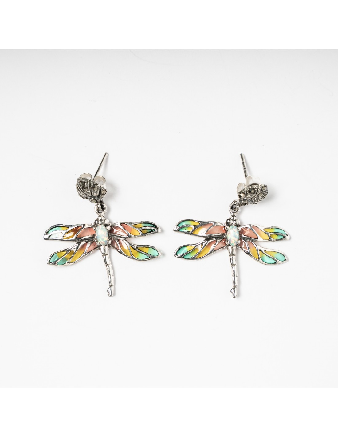 Pendiente libelula de plata combinado con vidriera.Cierre de presión.
