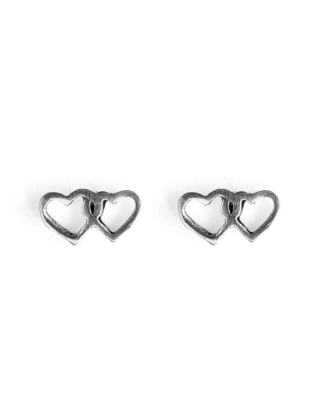Pendiente calado doble corazón de Plata . Tamaño de 5x10mm. Cierre de presión .