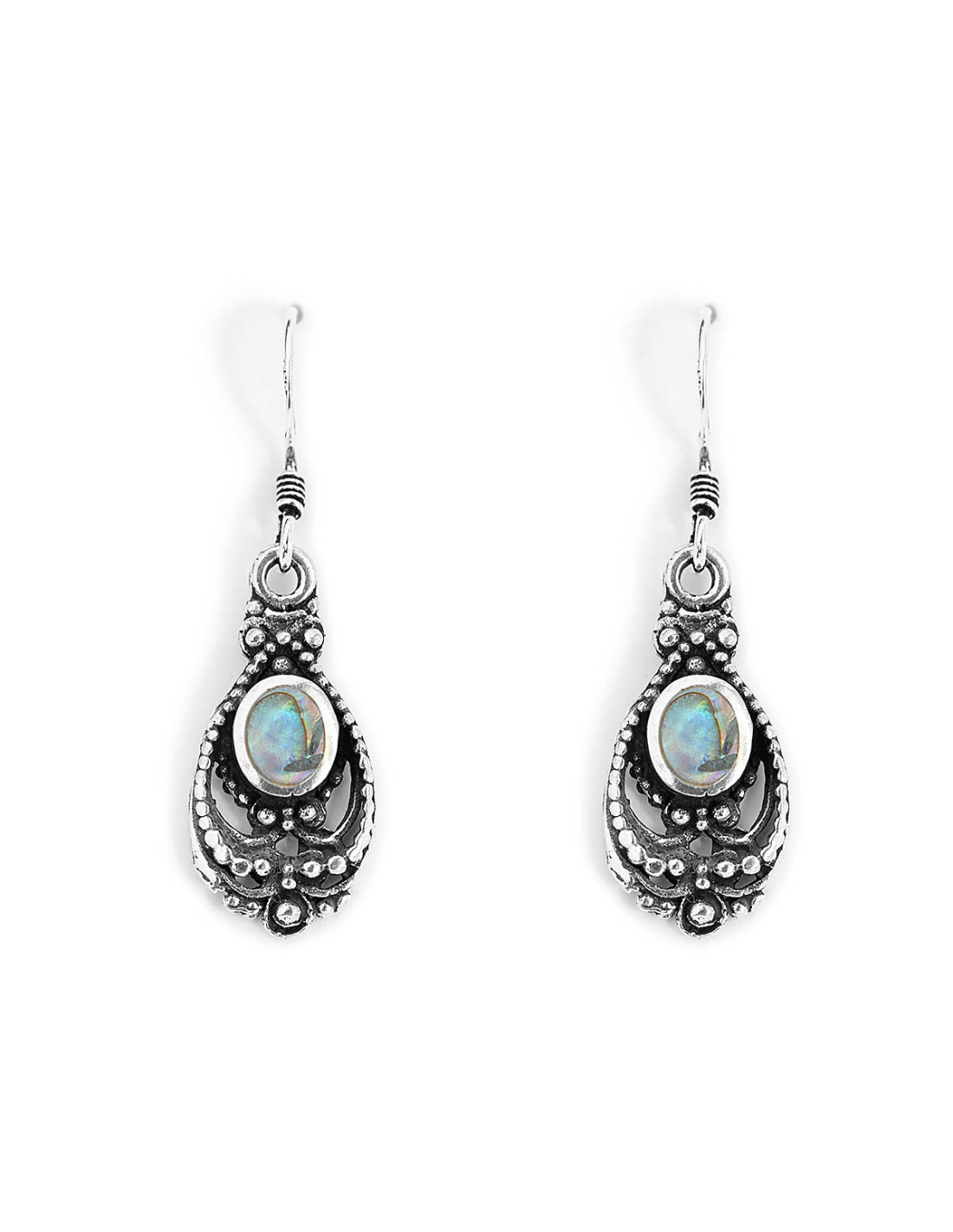 Pendiente de Plata y Avalón . Tamaño de 10x20mm. Cierre de gancho .