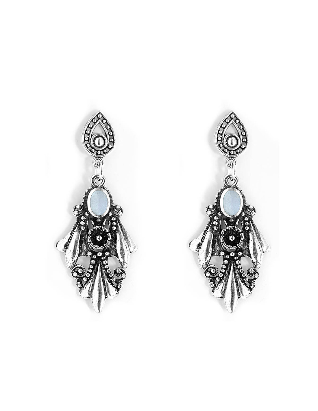 Recién llegado Pendiente étnico de Plata. 22182 Pendiente étnico de Plata grabado . Cierre de gancho. Ver