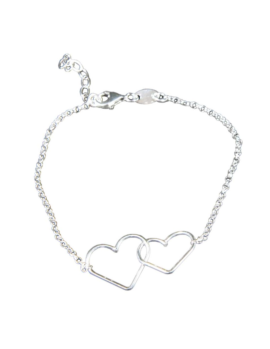 Pulsera doble corazón de plata rodiada . Longitud de 16+2cms .Cierre de mosquetón.