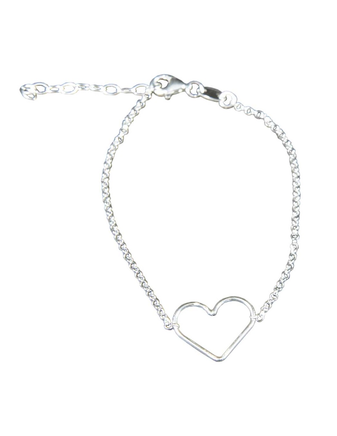 Pulsera corazón de Plata rodiada . Longitud de 16+2cms. Cierre de mosquetón.