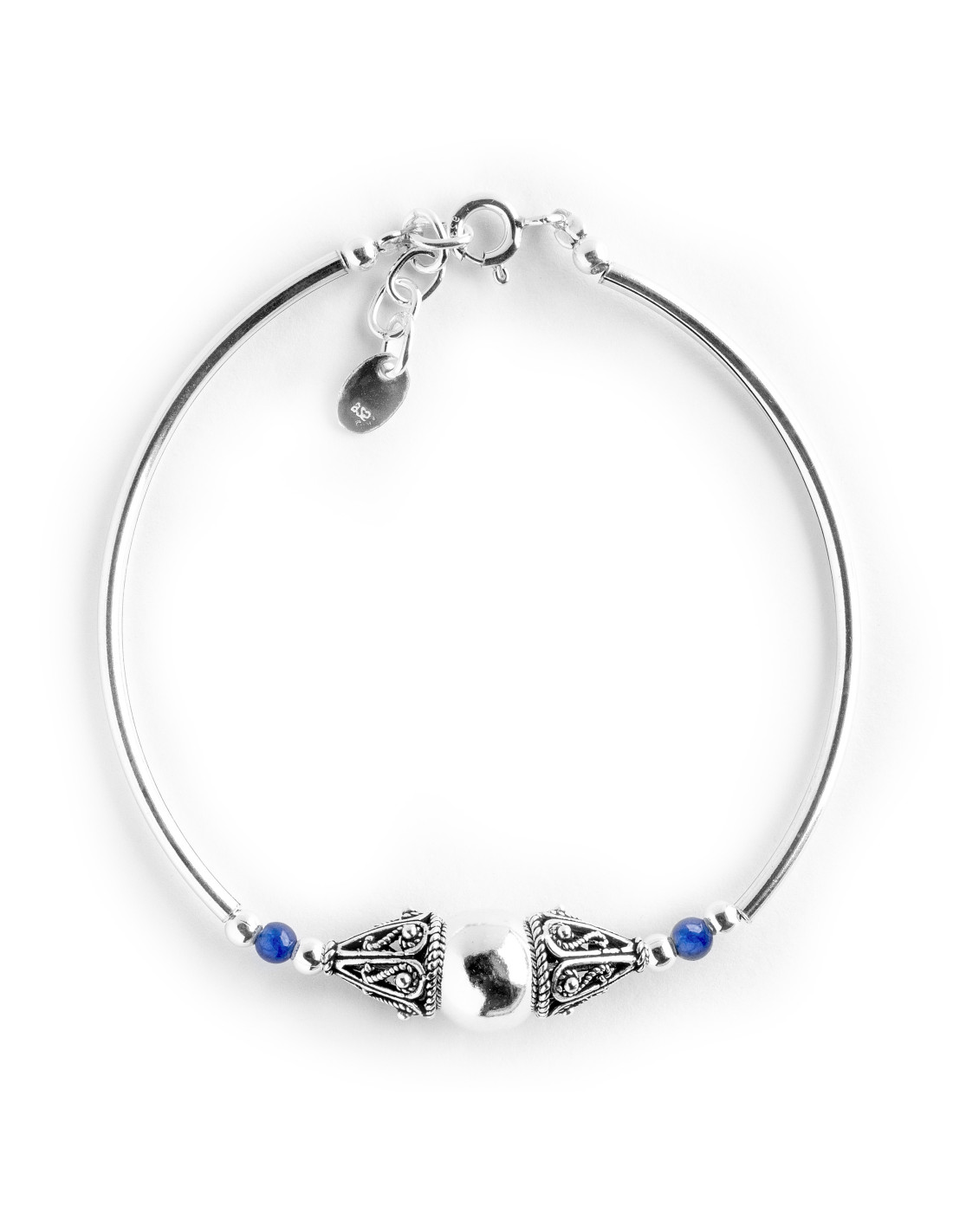 Pulsera de Plata combinada con Lapiz Lázuri mas cadenita de Plata . Cierre de reasa .
