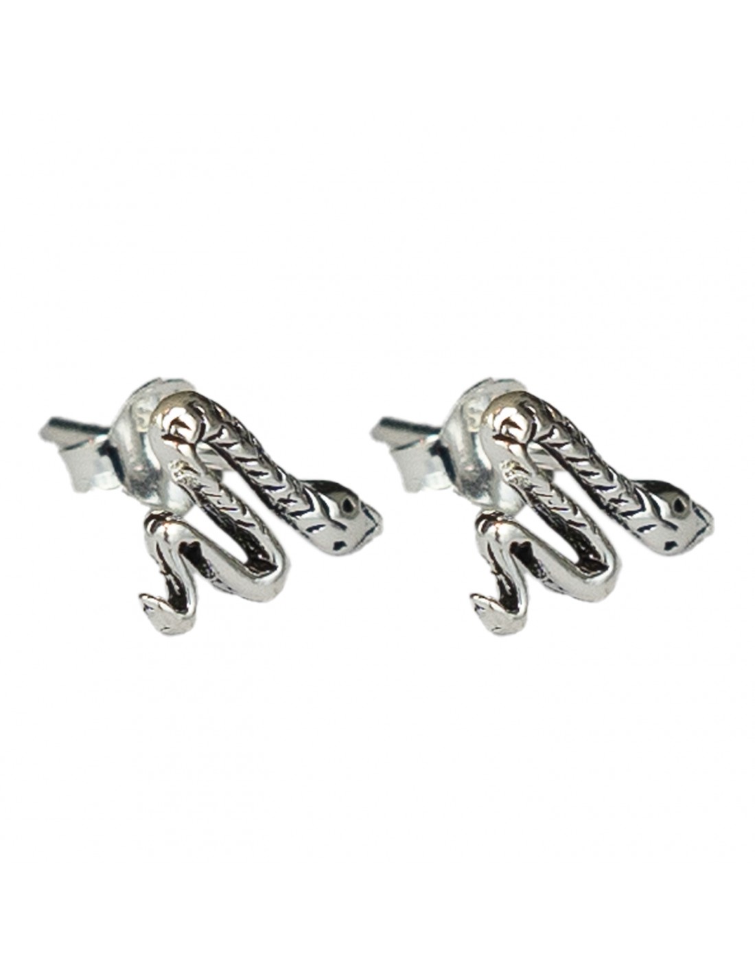 Pendiente Mini de serpiente grabada de Plata .Tamaño de 6x10mm. Cierre de presión.