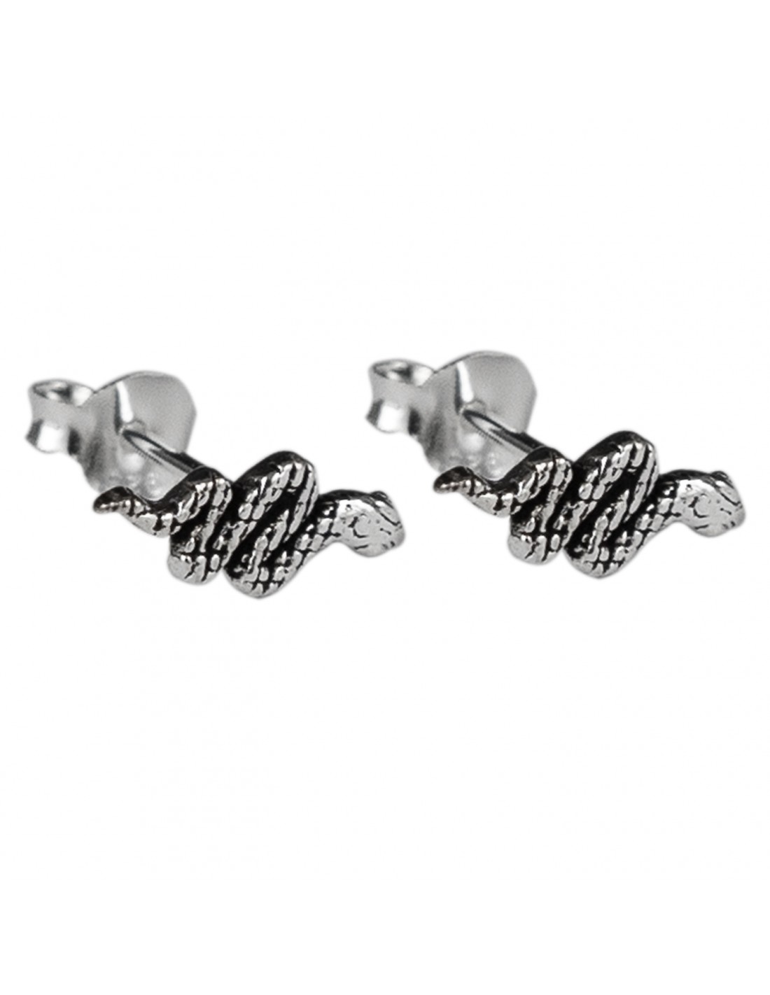 Pendiente mini de Serpiente grabada de Plata . Tamaño de 5x12mm. Cierre de presión.
