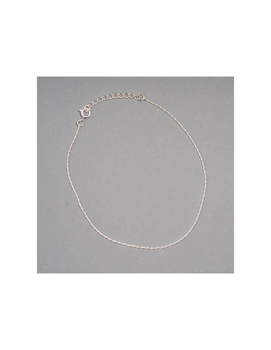Tobillera de plata de 22 cms. de tamaño , con cadenita de 3cm. Cierre de reasa .